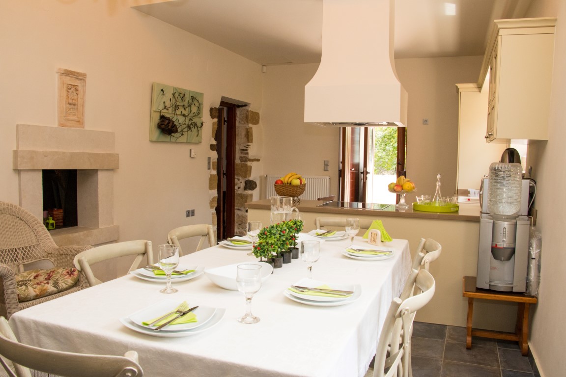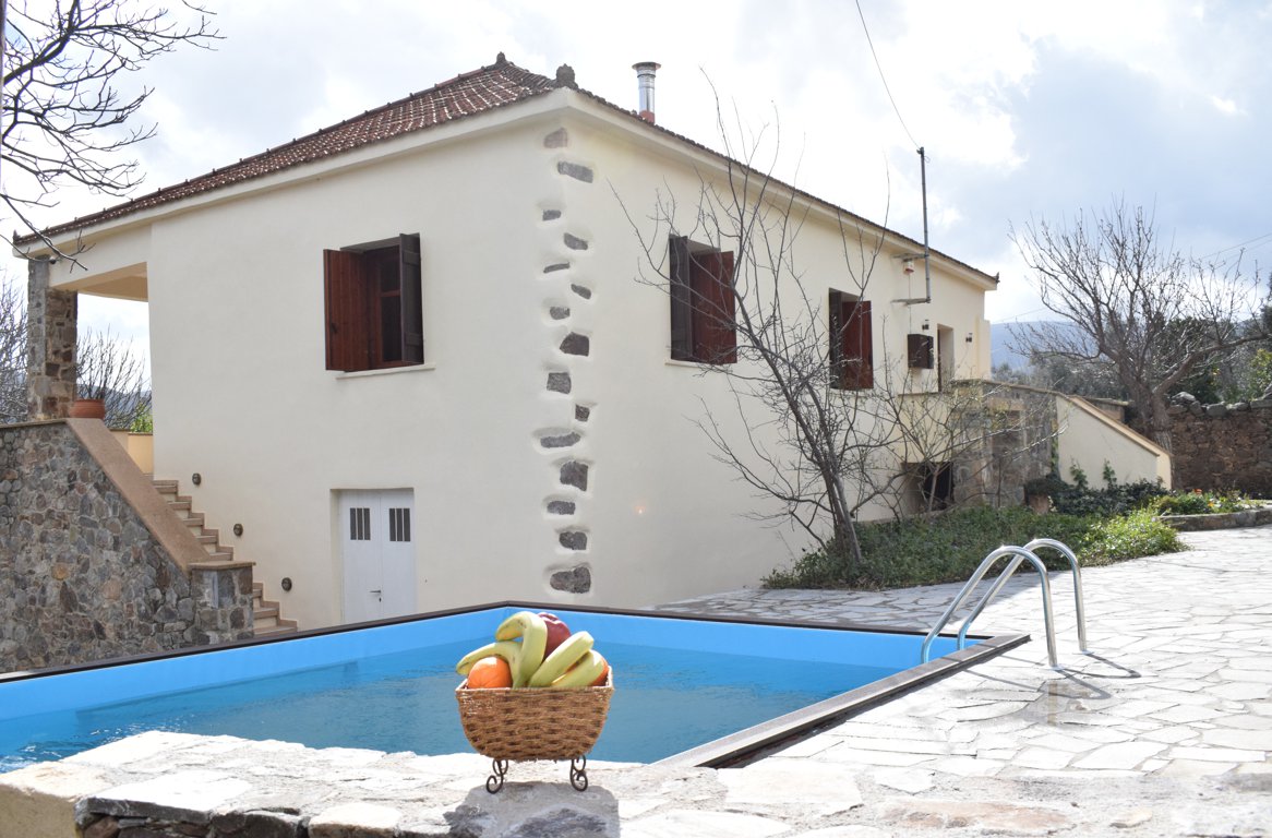 Our luxurious restored 120sq.m Venetian style villa with private pool, blends modern and traditional elements, while integrating the best of local architecture.The villa, first built during the Venetian period , has 2 bedrooms and 2 bathrooms accommodates up to eighth people in two large bedrooms (Master bedroom consists of one king bed plus 2 single- Second bedroom consists of 2 double beds )while the living area includes a large modern kitchen as well as sitting and dining areas. It has a TV, as do the bedrooms. There’s a lovely sense of space in the exterior of the property, with its generously-sized verandas and expansive view of the surrounding nature.
